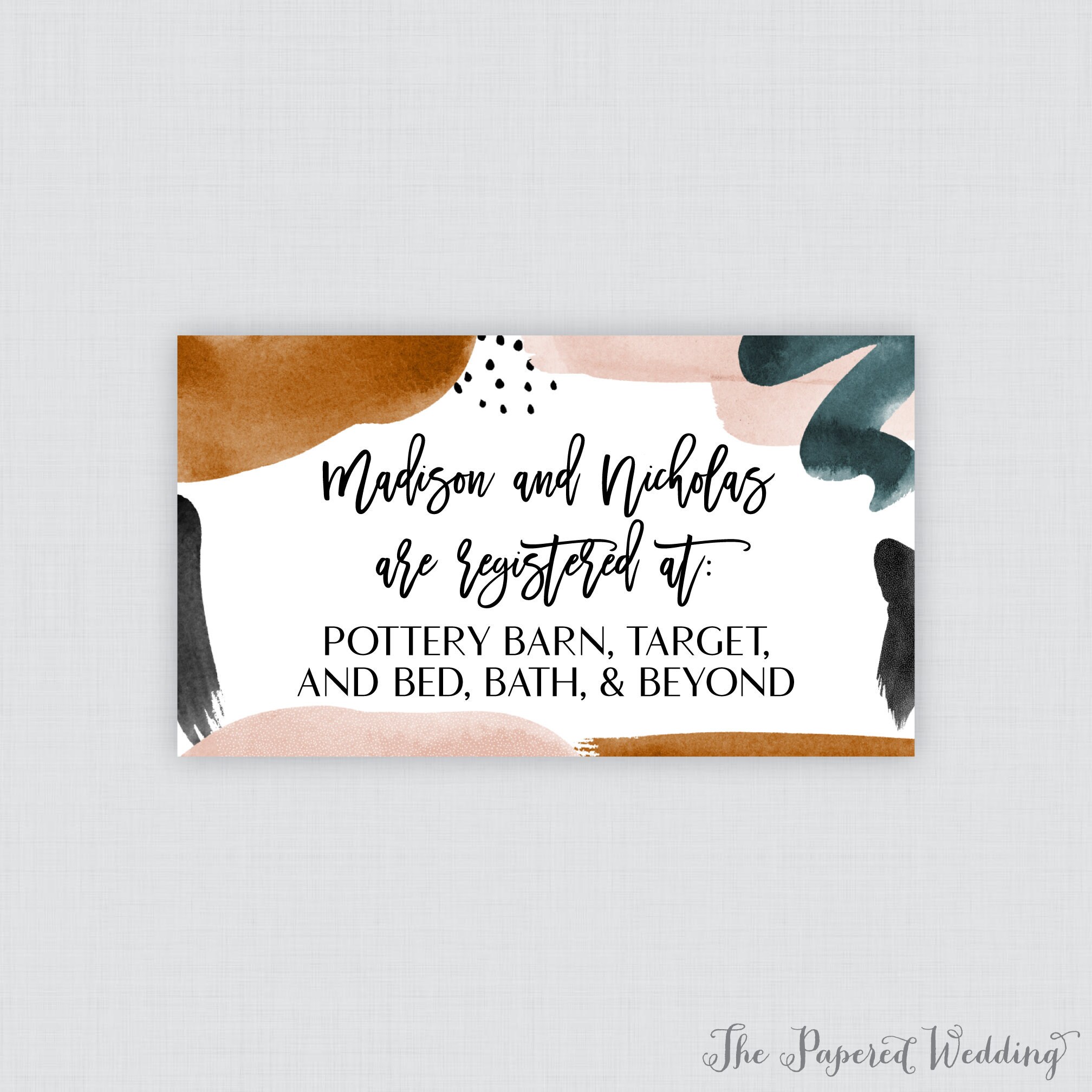 Printable Or Printed Abstract Wedding Registry Cards Modern Etsy
