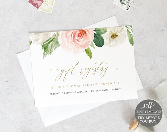 Wedding Registry Card Template Try Before Purchase Blush Etsy